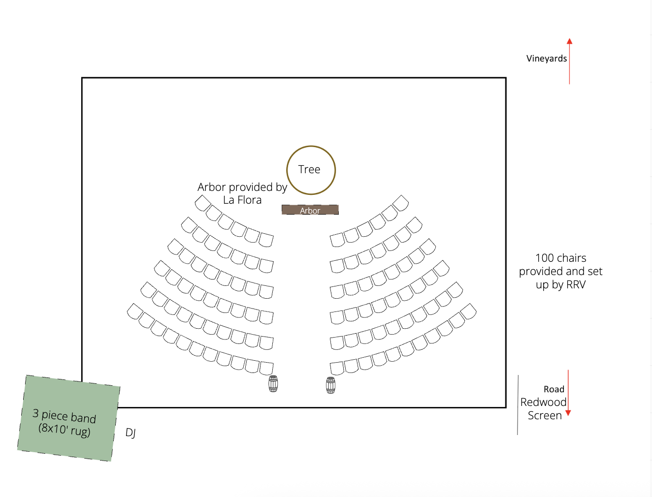 The ceremony space. Holly will be brought here in a decked out golf cart. We’ll leave in it as well.